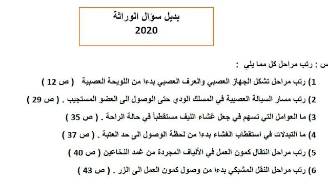 البكالوريا العلمي العلوم بديل سؤال الوراثة